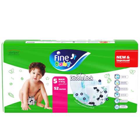 Fine Baby Double Lock Size 5 Maxi 11-18 kg 280 Diapers. Fine Baby Diapers have been developed with your babys comfort at all times. Buy Fine Baby Baby Diapers Maxi - Size 5 - 84 Diaper Brand.